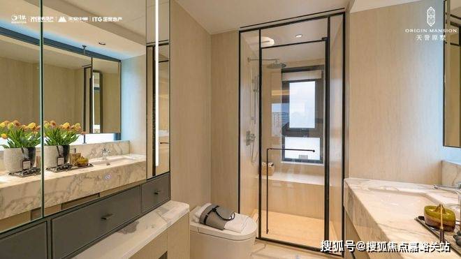 不光是品牌,选材上更是出彩。选用整块大尺寸玻璃+“三玻两腔”门窗系统,厨房采用大块马可波罗岩板,诸如此类的细节比比皆是。
