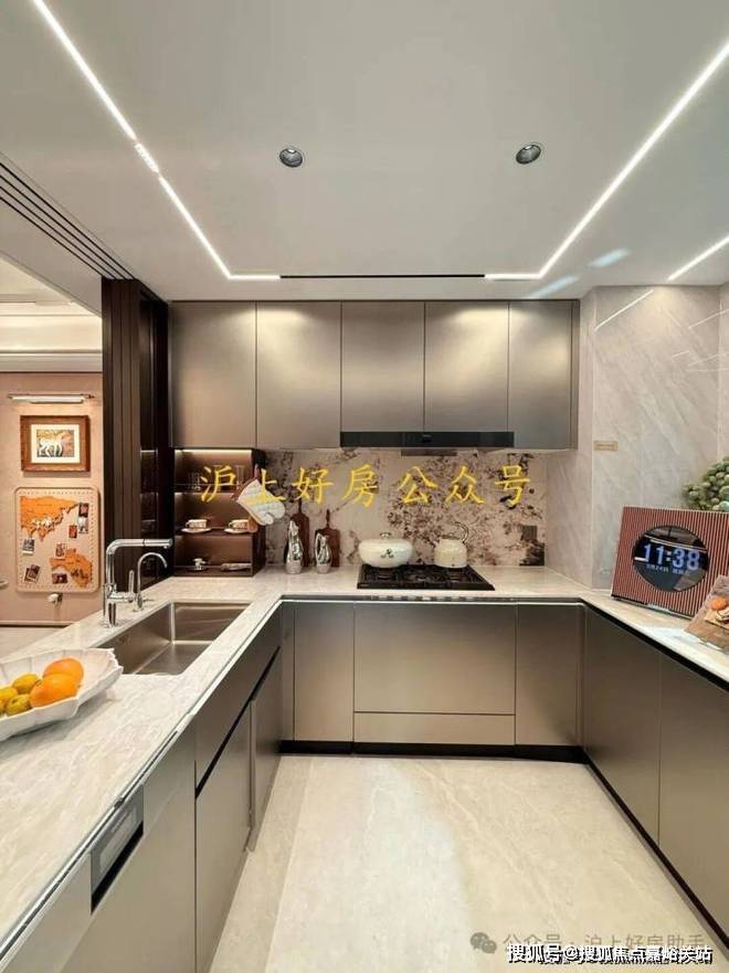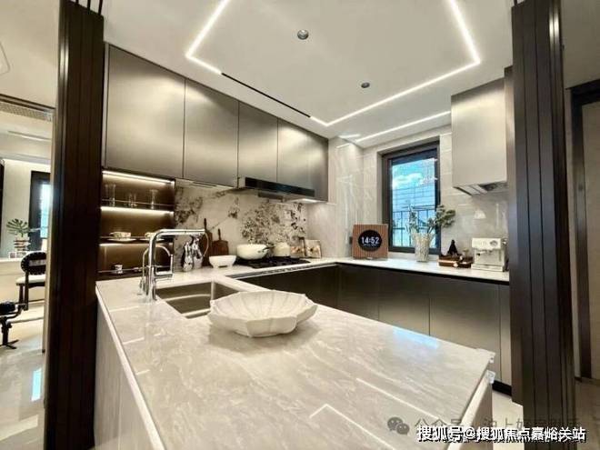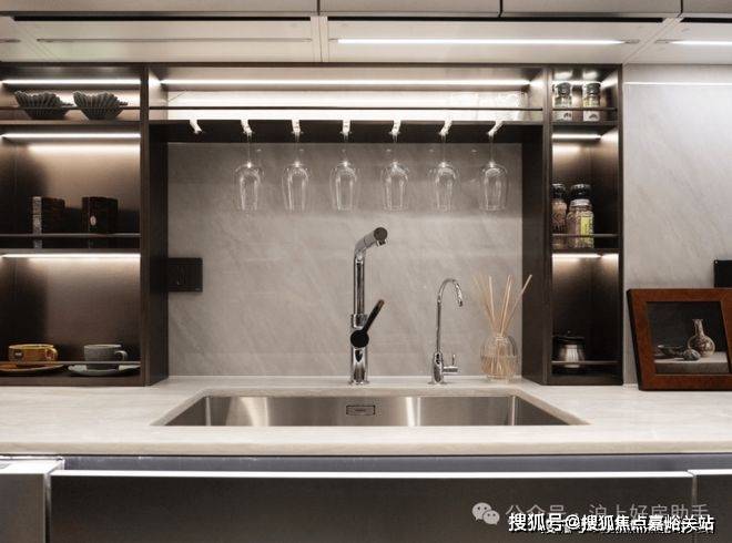 2 、 装标在线:开放式厨房配置嘉格纳三件套、铂浪高水槽及龙头也是标配,可谓是配置拉满!
