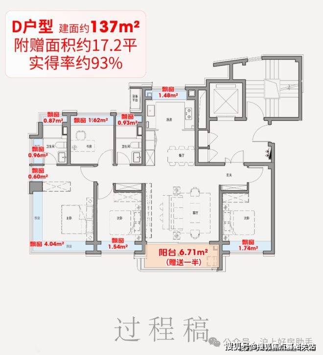 附赠空间升级:满飘窗设计,约137㎡赠送面积高达17-20.8㎡、约100㎡赠送约12.9-17.4㎡!