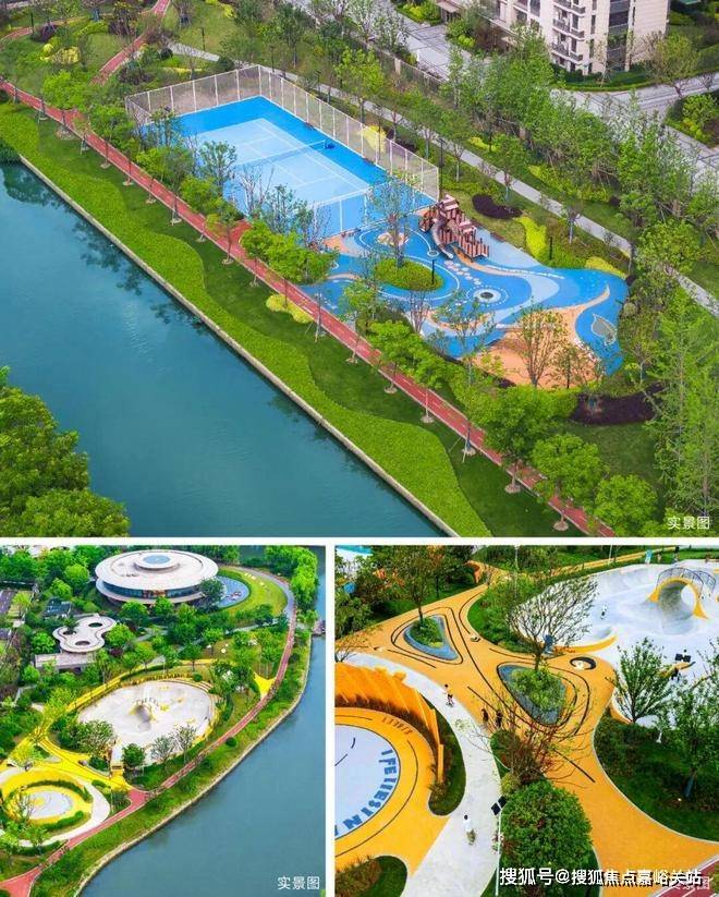 无限活力的滨江公园:家门口约20万方滨江公园,涵盖3km滨江步道、约1300㎡滑板公园&篮球场、家楼下网球场、亲子乐园与露营基地等多元场域,共同构成一座全域、全龄、全时的活力之城。
