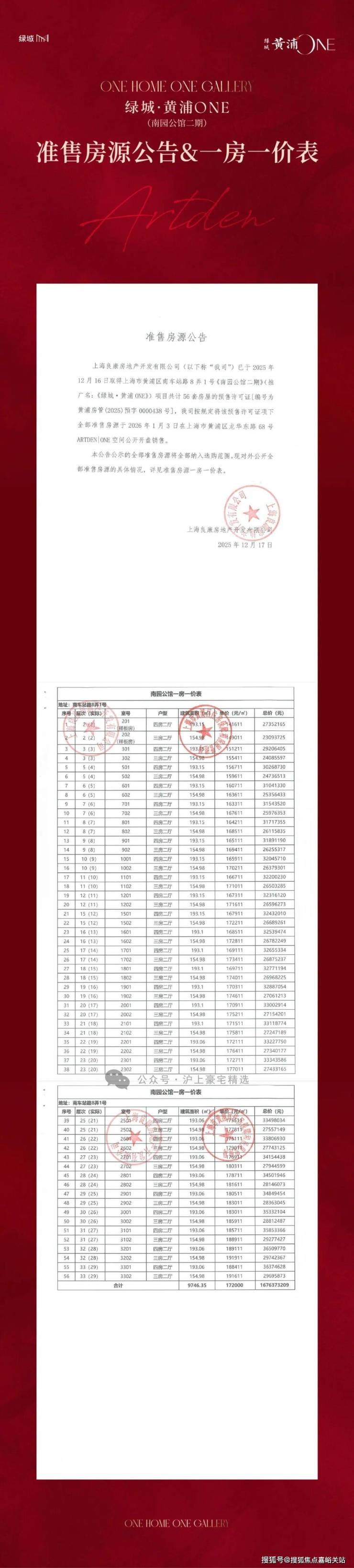 绿城黄浦ONE,将推建面约155-193m²产品,预计总价约2800万起,项目仅有112套,错过再无!