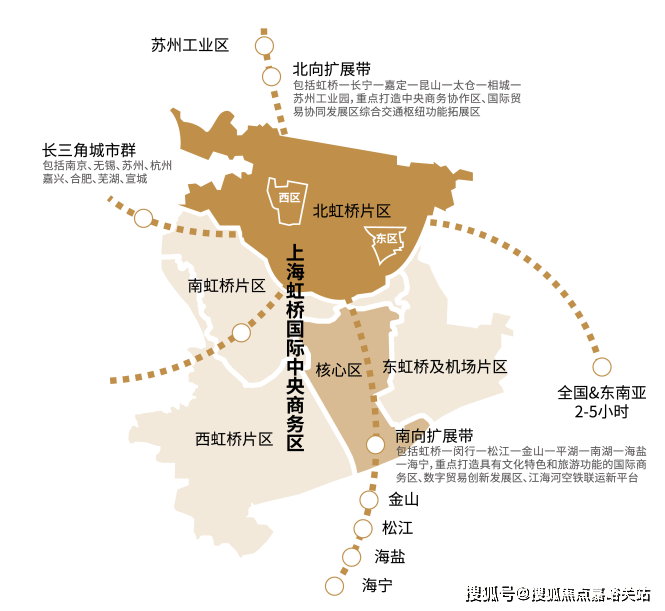 上虹桥依托东西两个片区(西居东产,共计约167公顷),遵循“以人为本、产城融合、多元包容、活力共享”的理念,整体打造创新经济集聚区、中央商务配套区和高品质国际化社区。