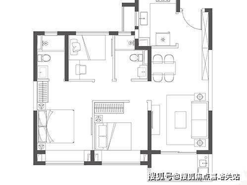 紧凑实用三房,全明无暗角,功能性强。