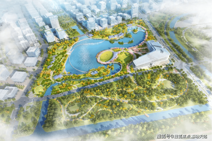 建筑风格造型,灵感源自东方的金镶玉设计,立面形似新石器时期的玉琮纹样,屋顶形似东方传统文化的飞鹤纹样, 呈现灵动飘逸的东方之美。