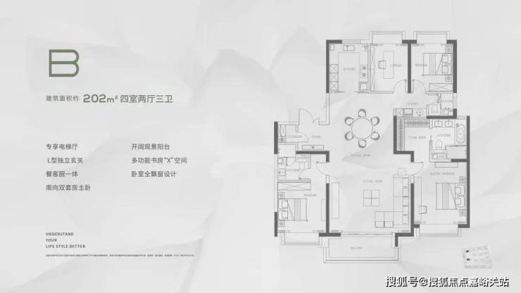 项目独具匠心推出七种惊艳户型,每一个户型设计都从细节出发,尺度宽奢,空间朗阔,适合三代同堂的大家庭或多胎家庭,给繁华都市的大家庭提供理想的栖居地。