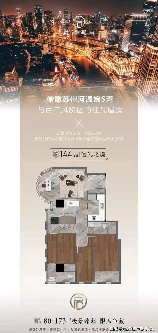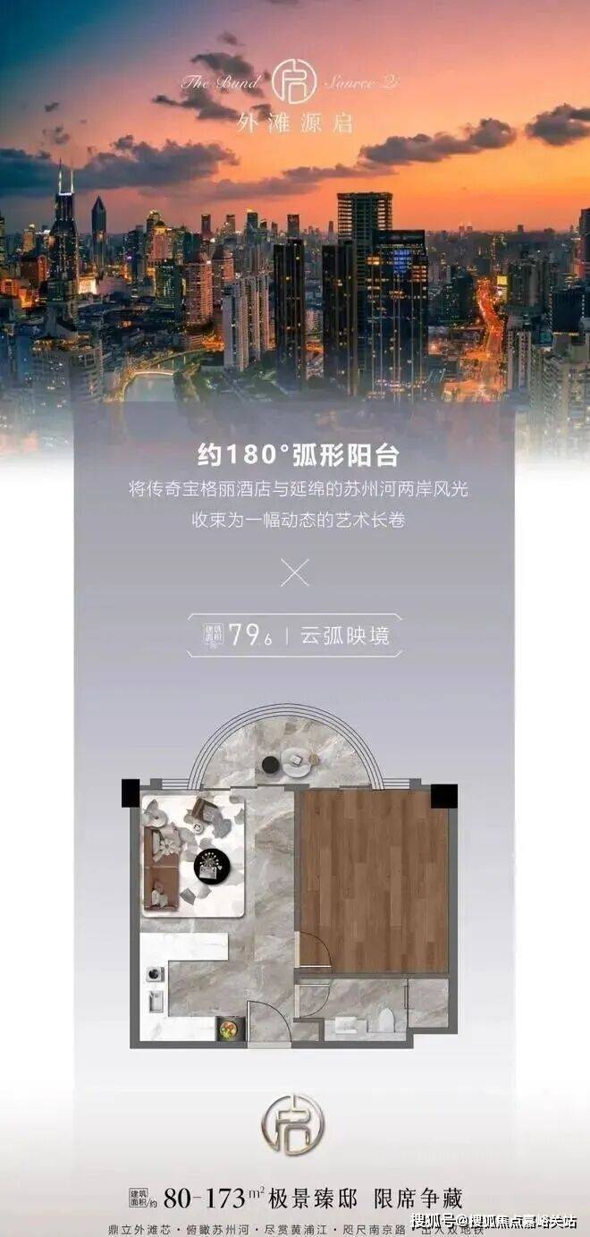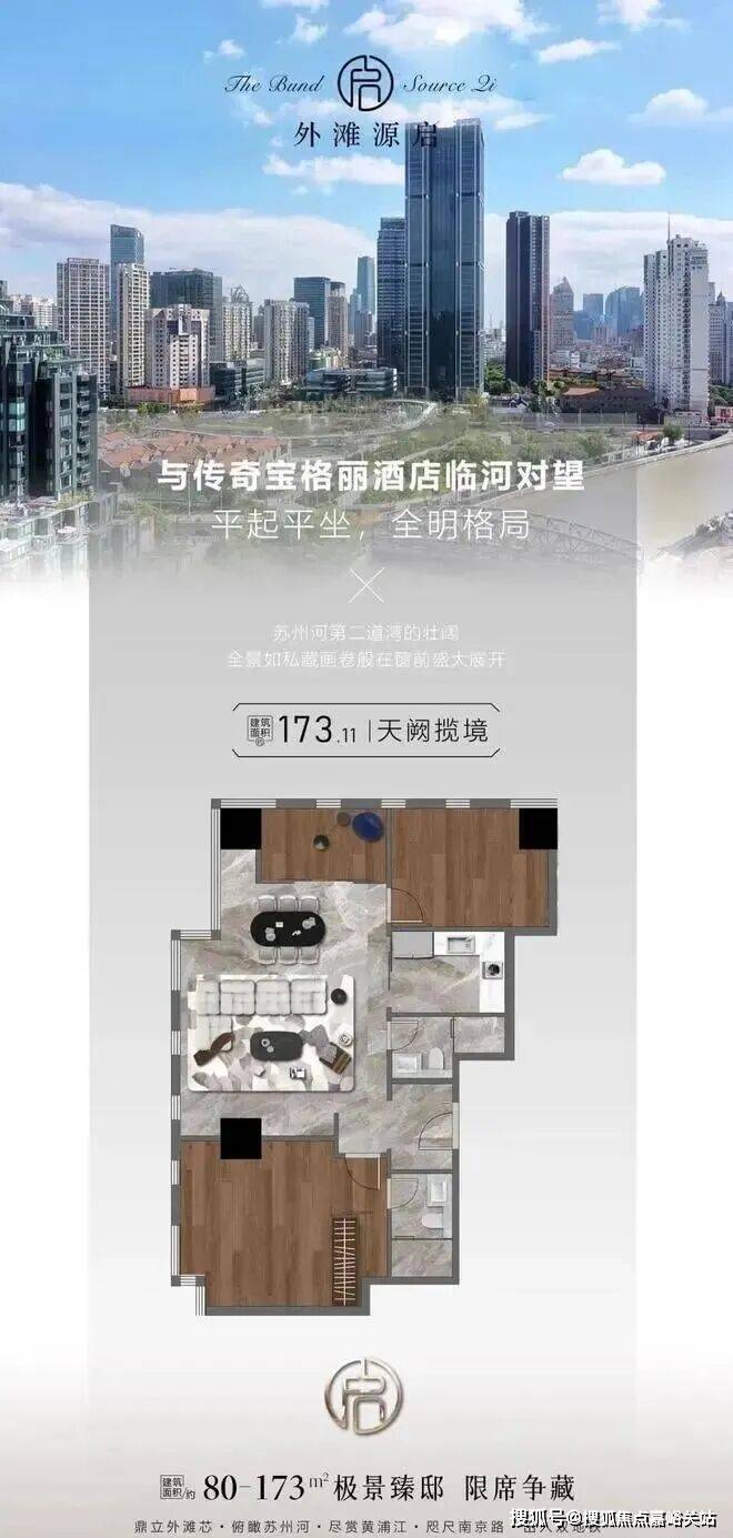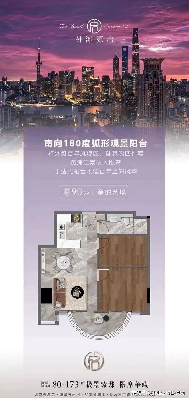 面积80~173平,南向180度瞰景阳台!☑️☑️外滩源启售楼处电话:400-1183-605☑️☑️