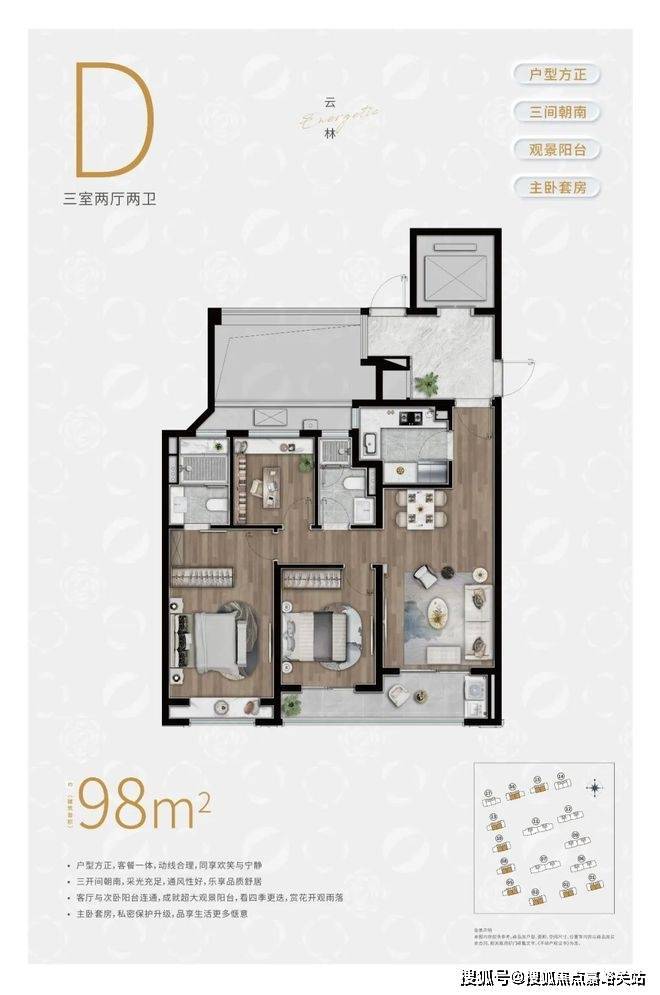 D户型:建面约98㎡3房2厅2卫▼陆家嘴锦绣云澜售楼处电话☎:400-833-6309【售楼热线】✔✔✔