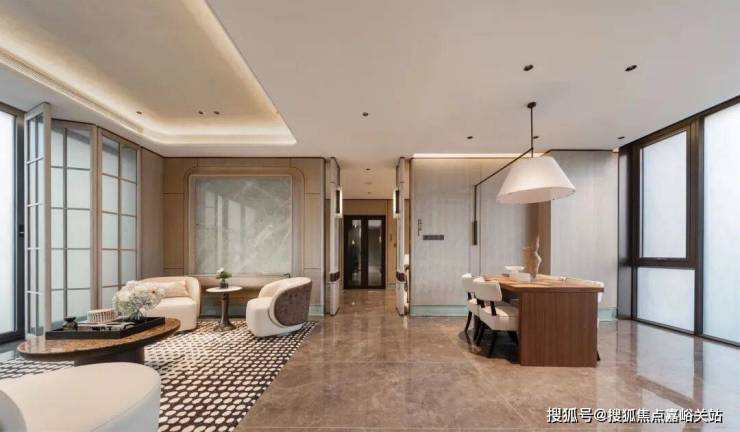整间房子色调搭配温馨且统一,不同于市面上大多数样板间的墙布,金茂府的墙面选用了大量的木饰面,再加上创新墙体弧角处理工艺,提升安全性能的同时,空间优雅的艺术张力也十分出彩;全屋大尺度地砖通铺,创造出浑然天成的开阔空间感……这些看似不经意的细节,实则是金茂经过数百次推敲的臻萃之作!