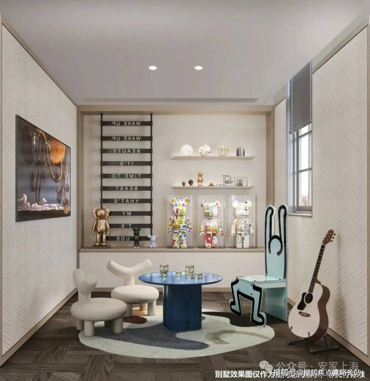 北向有一个灵动空间可随需求切换,孩子小时候是亲子手工区,长大后变为书房,灵活适配家庭成长周期。