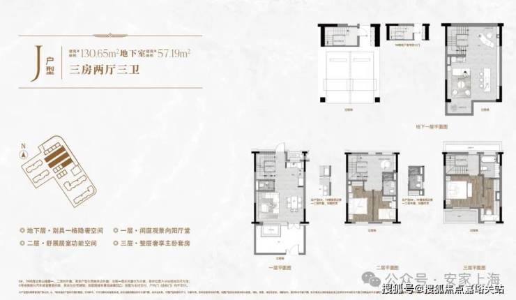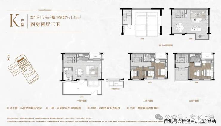 一楼和地下室主社交和志趣,二楼是子女的房间,三楼是主人休憩区。