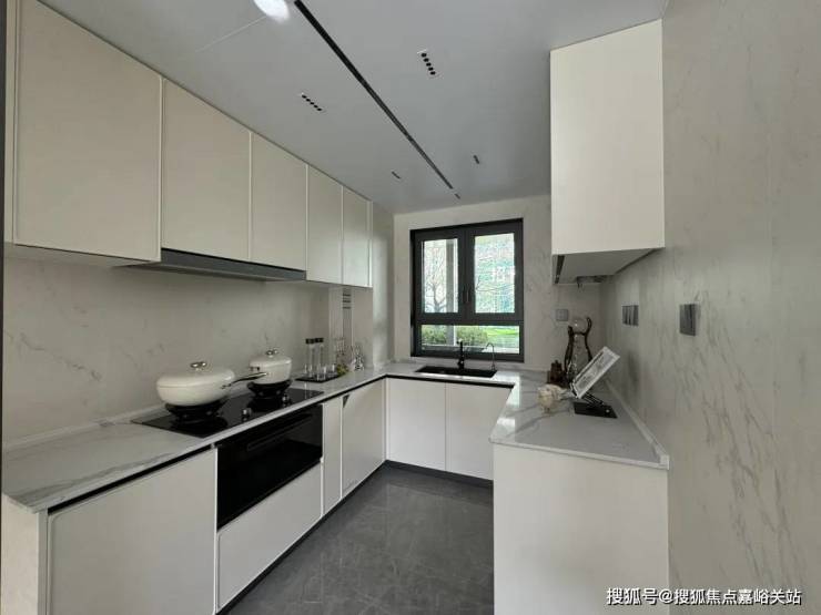 厨房是带岛台交付的U型厨房, 厨具品牌为西门子四件套,另外还有双开门冰箱,线性凉霸、科勒单槽。