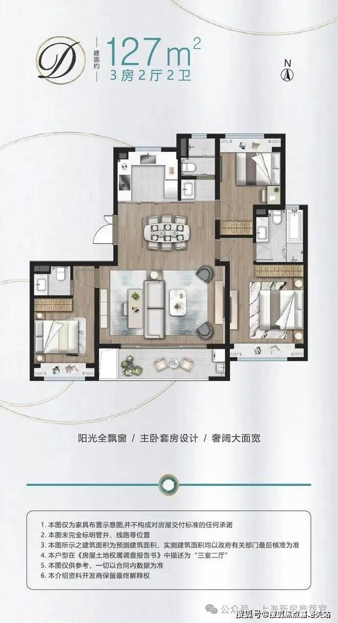 首先是 大尺度双联阳台,极大提升了使用空间和采光面;其次是主卧变成贯穿南北的豪华套房,私密性和舒适度双爆表;最后2个卫生间及北次卧都配置飘窗,大幅提升空间利用率。
