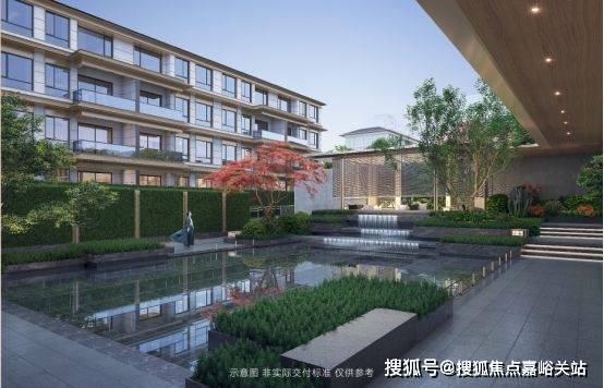 中央水景联动地面景观及地下会所空间,通过三层叠水形成了特色鲜明的水景庭院,引领未来社区发展新趋势。