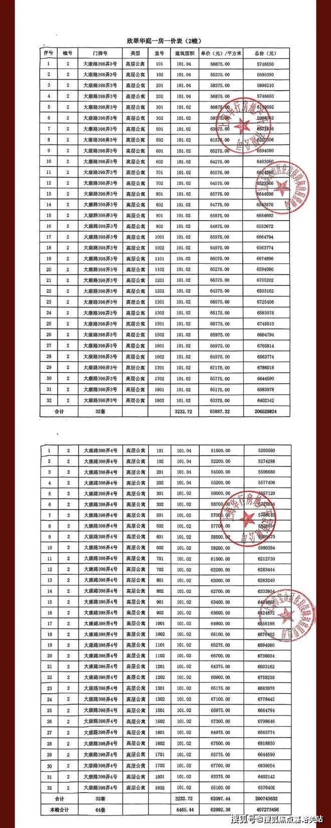 一房一价表如下: