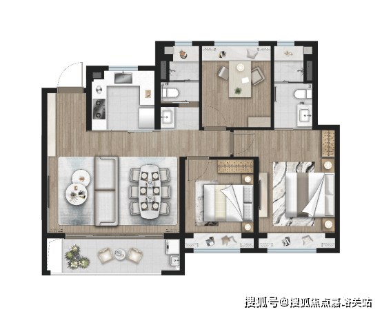 建面约89㎡做3房,功能性上就占尽先机,没想到项目还有1.5卫配置,主卧升级套房,真正实现一步到位!