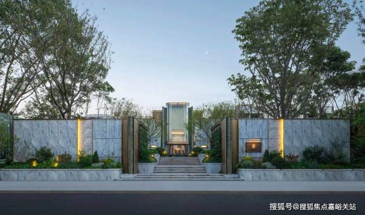 借鉴 思南公馆经典的 三重归家礼序,项目巧妙利用原始地形打造拥有约 2米高差的归家台地,特别设计" 三升九阶"的三段式台阶,寓意"步步登高、层层递进、终臻圆满"