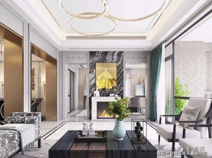 小区建筑设计以简欧风格为主,外墙干挂大理石,整体是浅米黄色调。四周采用铝合金断桥双层中空玻璃采光窗装饰和庄重石柱,为别墅的豪气程度增添色彩。样板房室内装修为轻奢和简欧混搭风格,自带高级感的设计元素彰显了住户的气质。