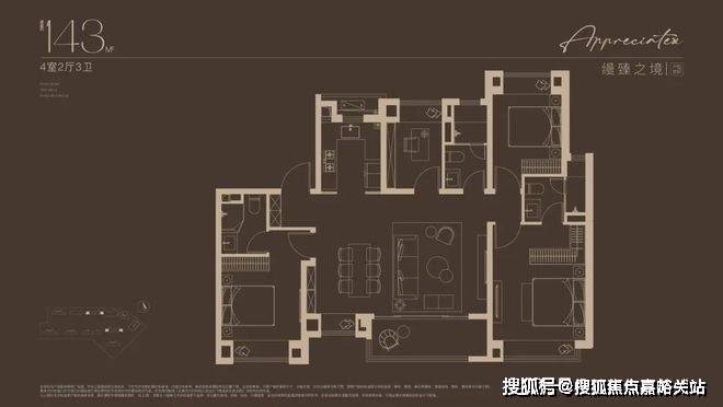 建面约143㎡四房设计,不论是三代同堂还是二娃家庭,都舒居无忧!2梯2户的设计,极具私密性的入户门厅,彰显大宅归家礼序。独立玄关,既是归家仪式感,更添收纳空间;约14米朝南面宽,搭配约7米尺度横厅,尽显大宅风范;东西双套房设计,奢享全龄世家的静谧时光。
