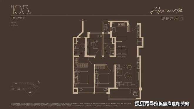 建面约105㎡3房户型,总价400万级即可上车!堪称同等总价段的改善天花板!三开间朝南,约9.6米大尺度南向面宽,最大程度揽光入室;客餐厅一体化,连接厨房和南向阳台,动线流畅,也是更大的欢乐聚场;创新研发S墙设计,预留冰箱专属位置,释放厨房使用空间; 主卧套房设计,奢享独立卫浴和衣帽间,尽享尊崇。