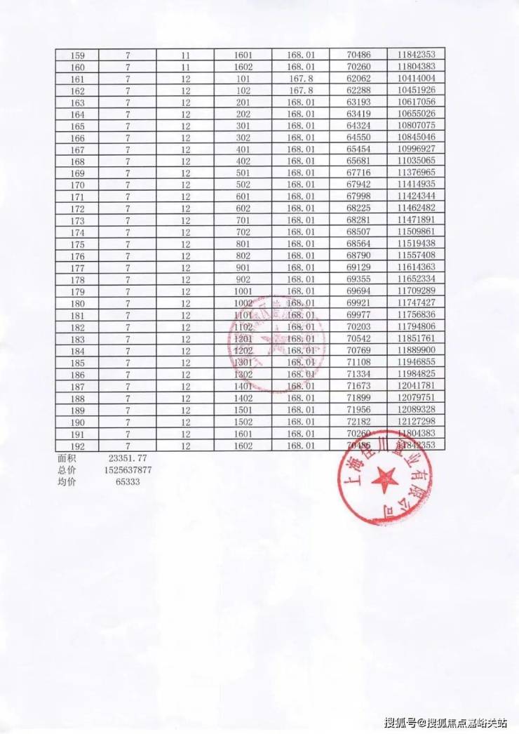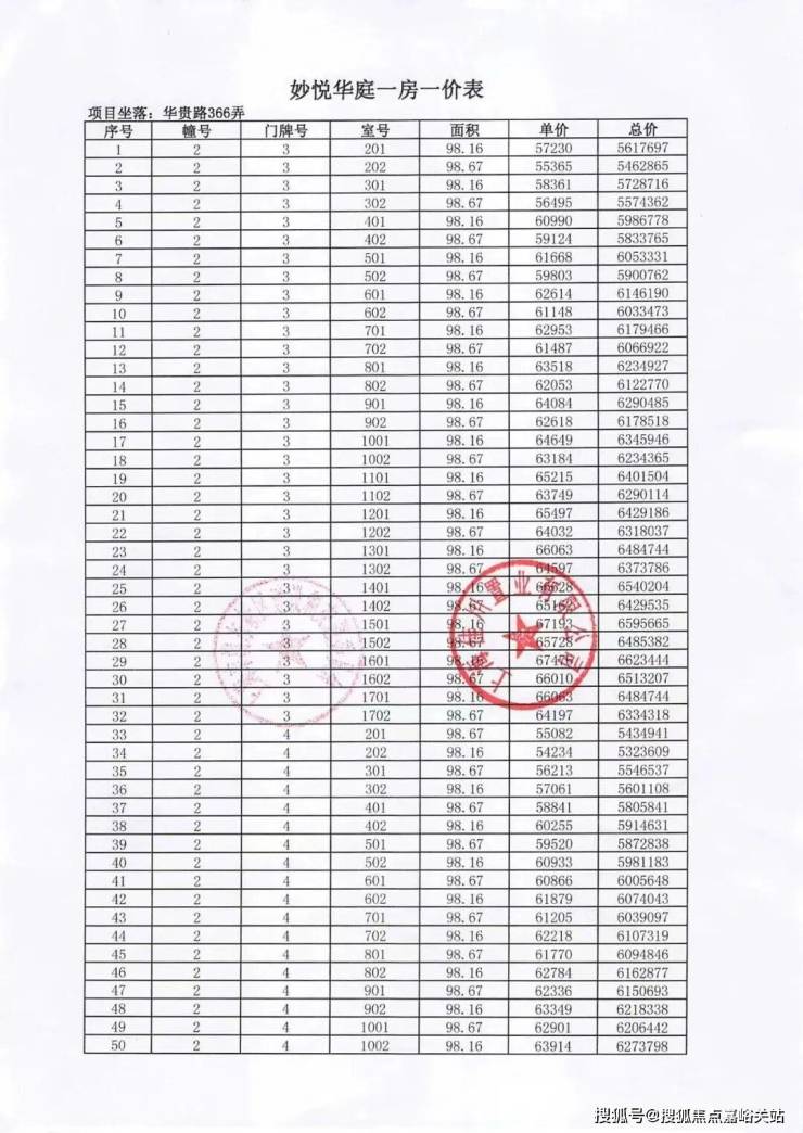 一房一价表: