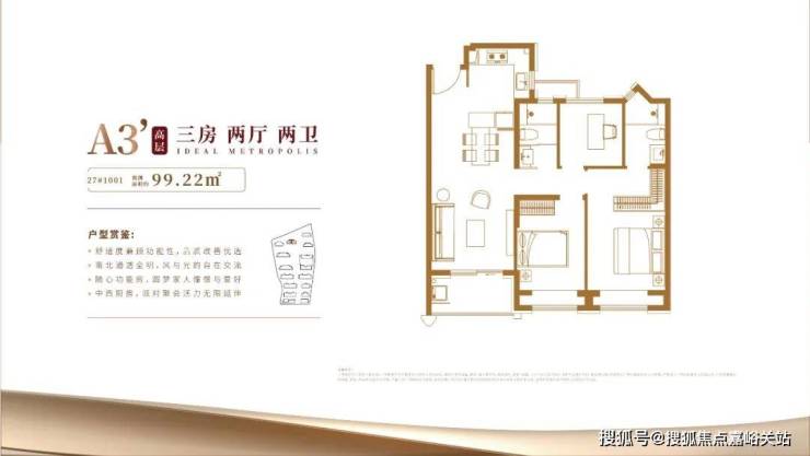 具体细节方面,项目目前只有一个建面约100㎡三房的样板间,带软装后面宽约3.3米,吊顶后层高约2.73米。