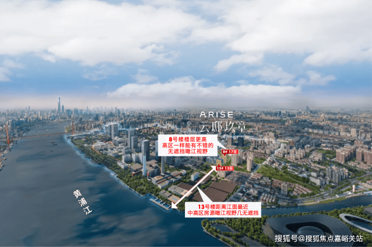 南区本来就距离江面很近,中间还全部是低矮建筑,那么关键的来了:13号楼位于小区的最南面,中高区房源视野几无遮挡!8号楼是17层,楼层更高,高区同样没什么遮挡!