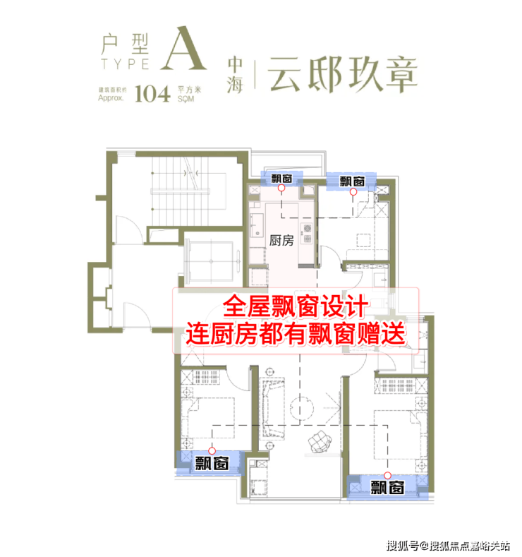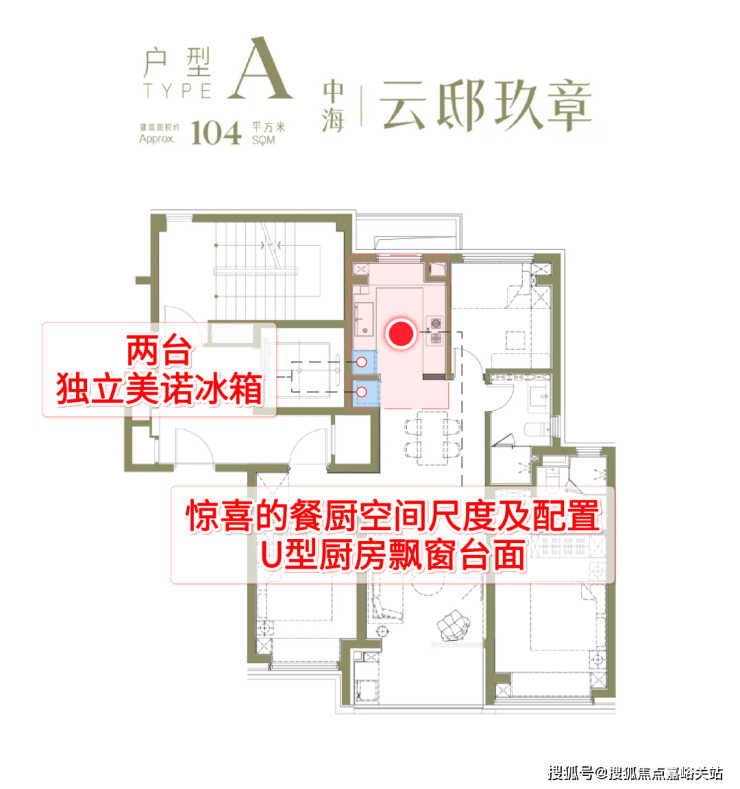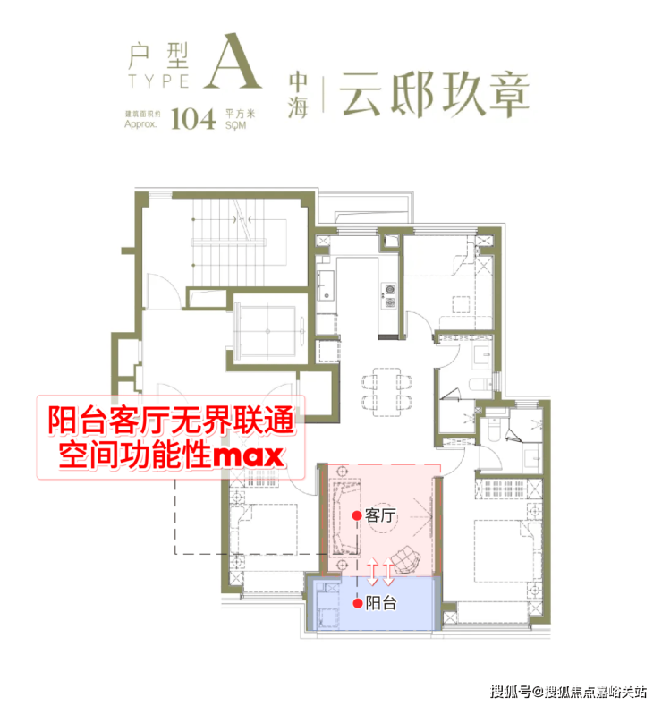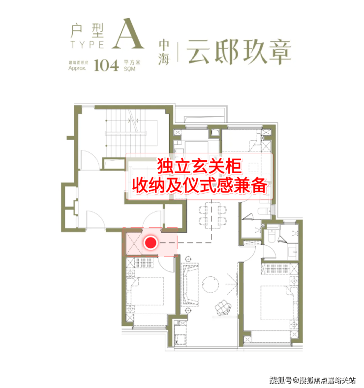 建面约104户型亮点分析: