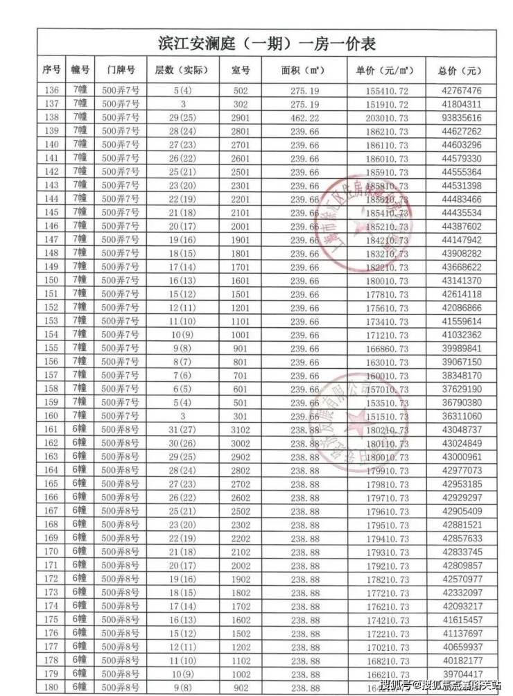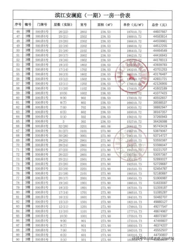 【安澜上海】一房一价表: