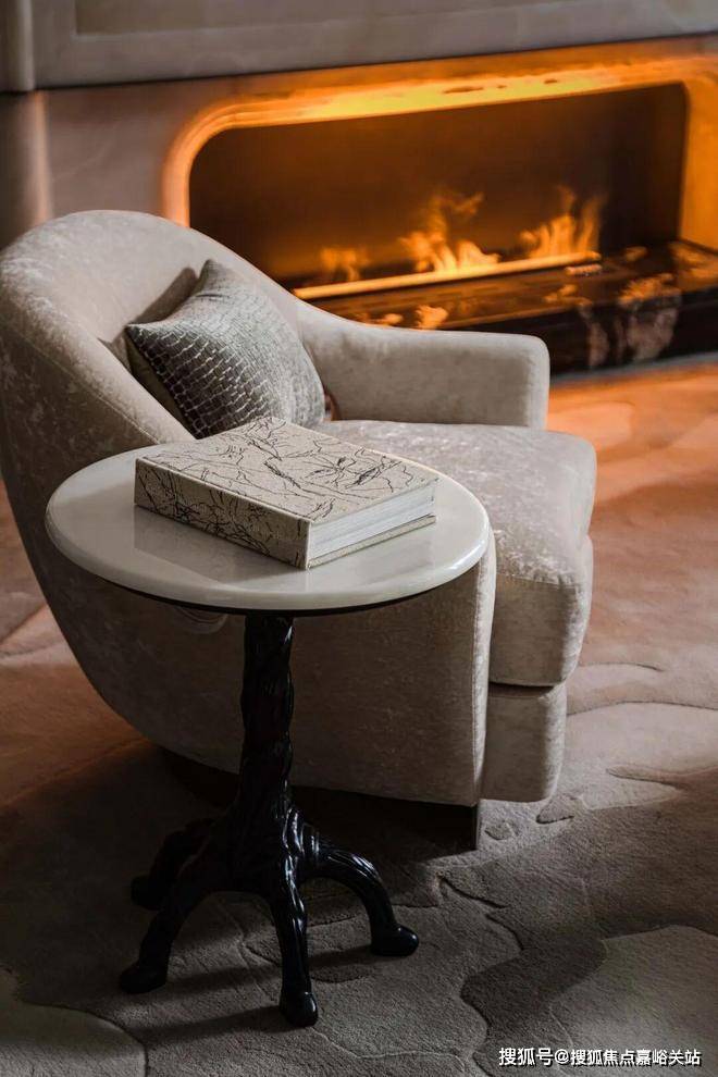 延续老建筑语汇的圆角雕纹框内,龛式壁炉安然镶嵌。当炉火燃起,温暖便自然聚拢——家人围坐闲谈、共处嬉戏的时光,在此缓缓凝结为明亮而绵长的记忆。