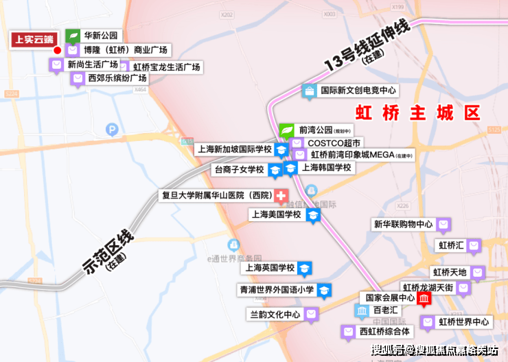 上实云端位于华新板块核心,与虹桥前湾地区核心直线距离不过2公里,与虹桥核心区直线距离不过8公里,可谓是近水楼台先得月.