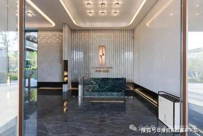 地上大堂,单元门厅的雨棚采用香槟金的弧面铝板、立面干挂爱马仕灰蜂窝岩板,岩板上嵌入专属楼栋号,单元门两侧的弧线段金属采用定制模具加工。大华星曜售楼处电话☎:400-856-9058☑️☑️