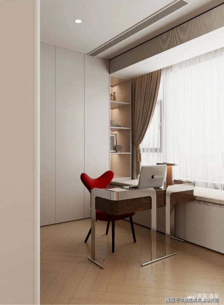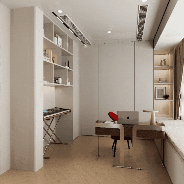 长餐厅与书房相连,也提供两种书桌设计方案参考,注入简约的现代感,让空间具有多元的折衷主义风格。
