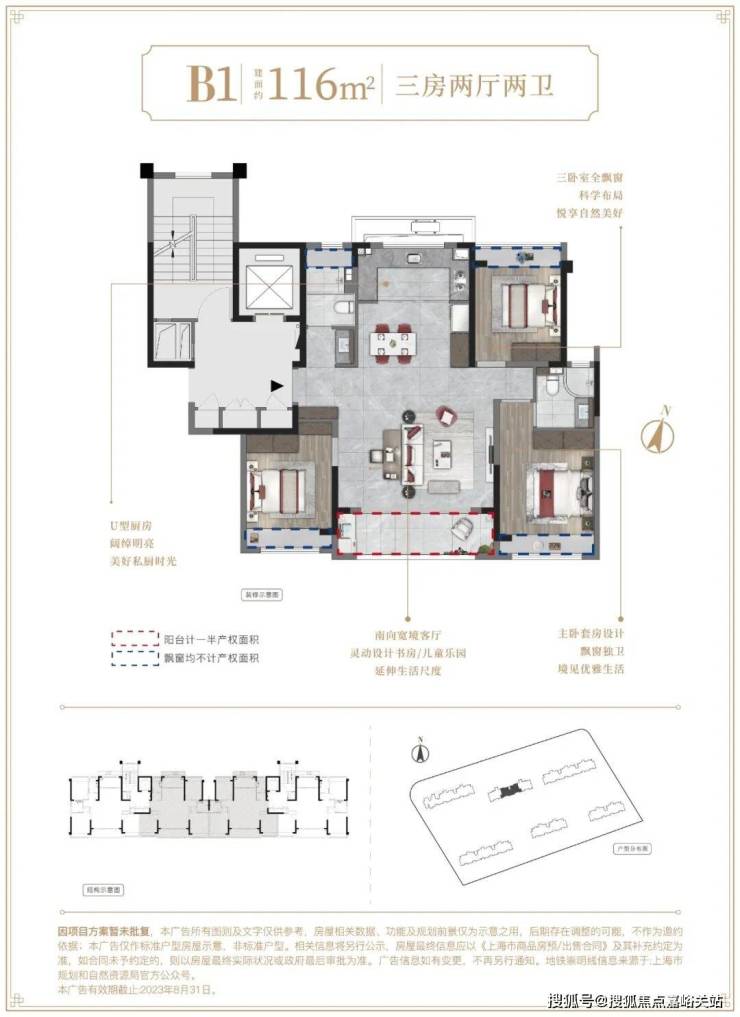 建面约95/116㎡精装3房