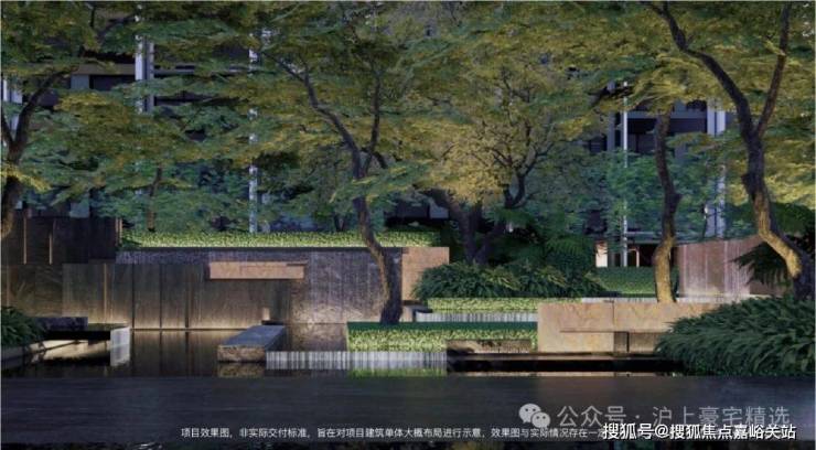 主要通过景观入户景墙结合点景乔木,彰显业主归家仪式感和尊贵感。