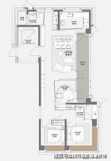 中间户想表达的是,以家人为中心,每个空间给家人极致照顾。