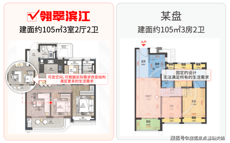 翎翠滨江不同于普通住宅,项目不仅仅可以作为一个宽绰的正3房户型。