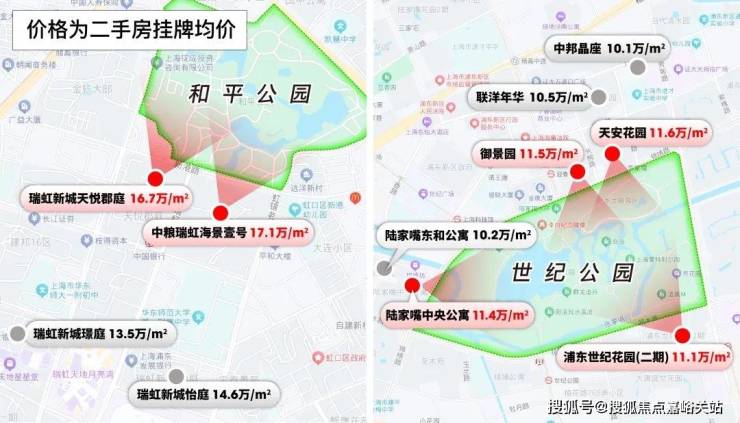 首先,中粮瑞虹海景壹号位于内环内,目前的挂牌均价约17.2万/㎡,最低挂牌总价约2399万,几乎是翎翠滨江的两倍有余。