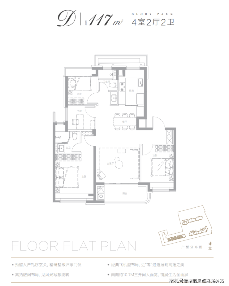 除此之外,翎翠滨江还有建面约143㎡4房2.5卫产品: