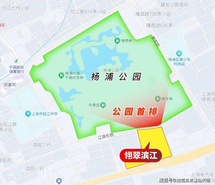 项目距离约22万方的杨浦公园只隔了一条辽源东路,几乎算得上是公园首排。