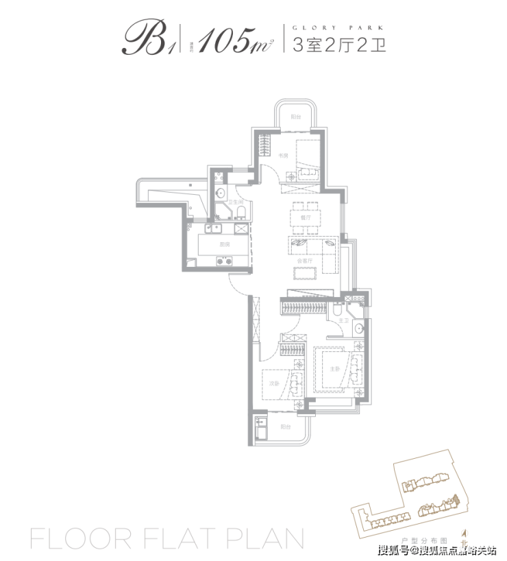 本次项目主推建面约105㎡3房2卫: