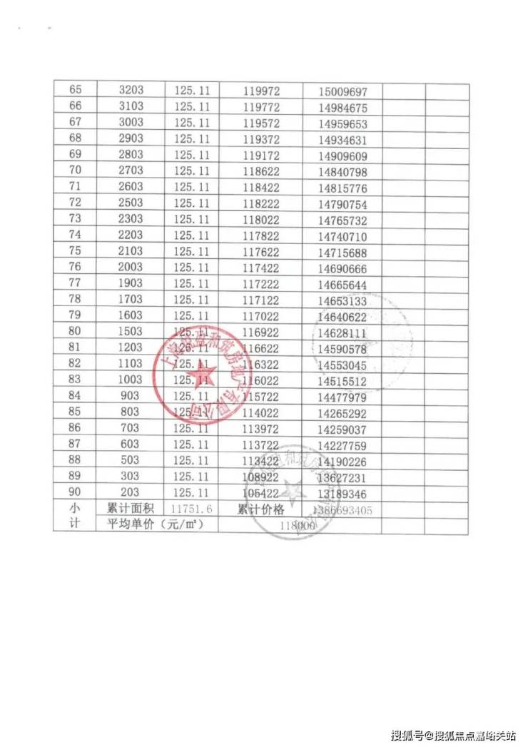 上期一房一价表如下: