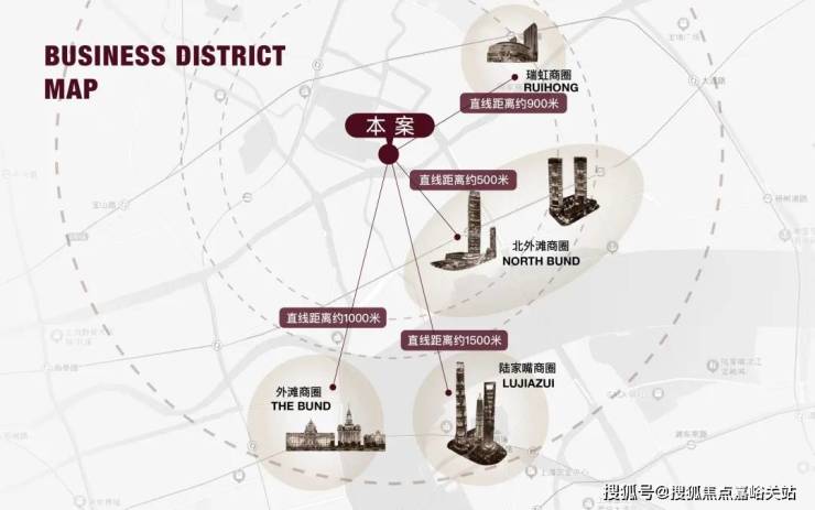 陆家嘴商圈直线距离约1500米;