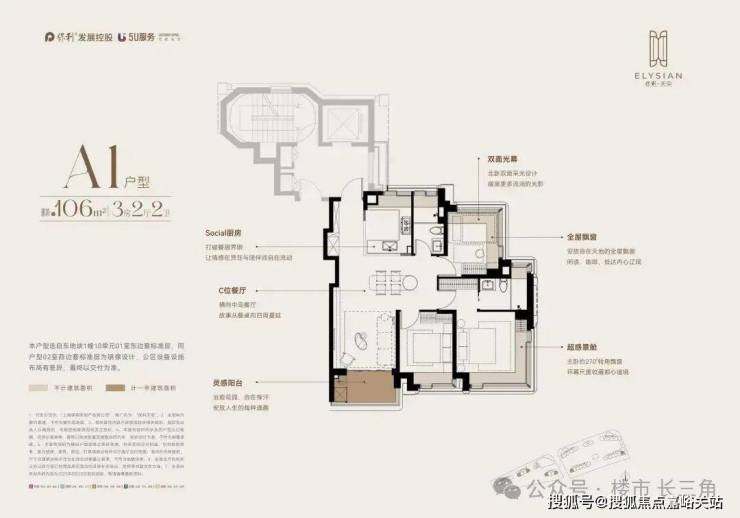 东1#边套: 全屋飘窗+约270°的转角飘窗, 实际空间感十分优秀!