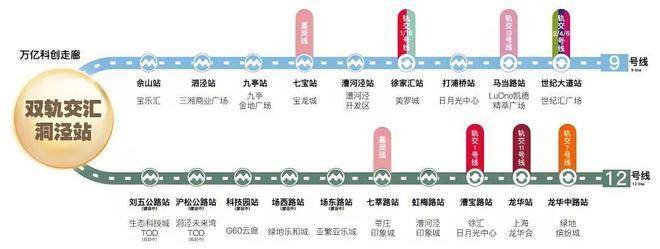 配套端,双TOD+直线距离约600米范围内拥有着双地铁线(9号线洞泾站+在建中的12号线西延伸段),是放眼整个上海都极为稀缺的双地铁轨交房!