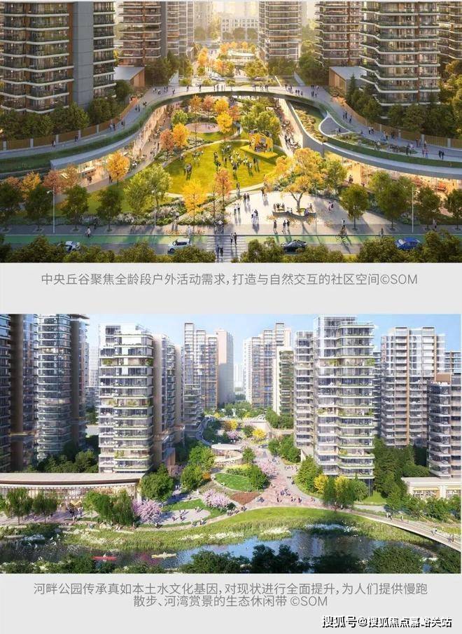 “真如翠谷”规划以“悦”、“赏”、“游”、“聚”四大主题为脉络,相应打造了仓廪市集,中央丘谷,河畔公园和桥水门户四大场所,并通过贯串全域的社区漫步景观带,将这些高品质公共空间有机串联起来,打造成为城绿共生、全龄友好、活力精致的大型高品质社区。