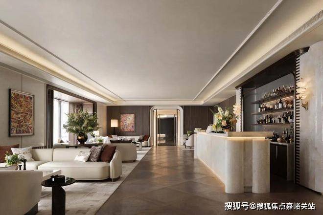 整面落地窗将滨江岸线与城市天际轻轻揽入,光线掠过弧形吊顶,在地面投下如水波流动的影迹。空间因而浮漾着自由与松弛的气息,亦默默诠释着HWCD“植根于地方肌理”的设计哲学。