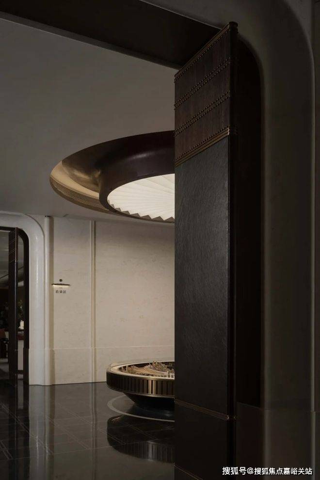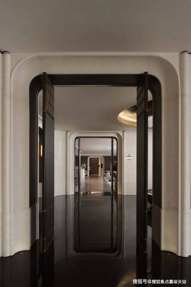 “十里洋场烟花地,风云际会上海滩。”杨浦的百年建筑元素被巧妙转译——圆角门框自大理石中生长,对称的框景细腻勾勒,岩纹斑驳如岁月笺章。这一刻,时空仿若凝固,宛如步入一座光影交织的现代礼堂。