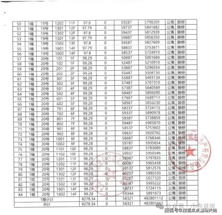 一房一价表: