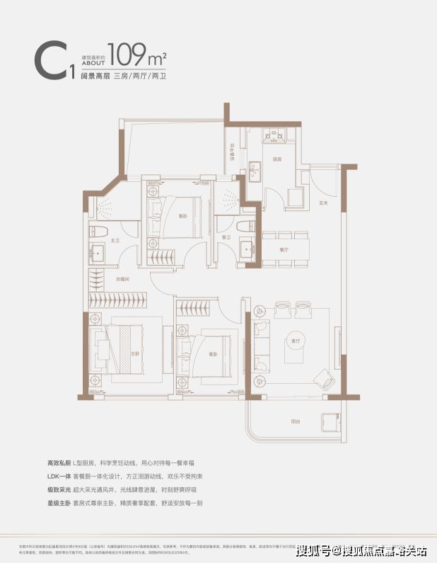 建面约140㎡四房:三开间朝南户型,南北通透,采光条件优质,客厅明亮宽敞,彰显大气布局。