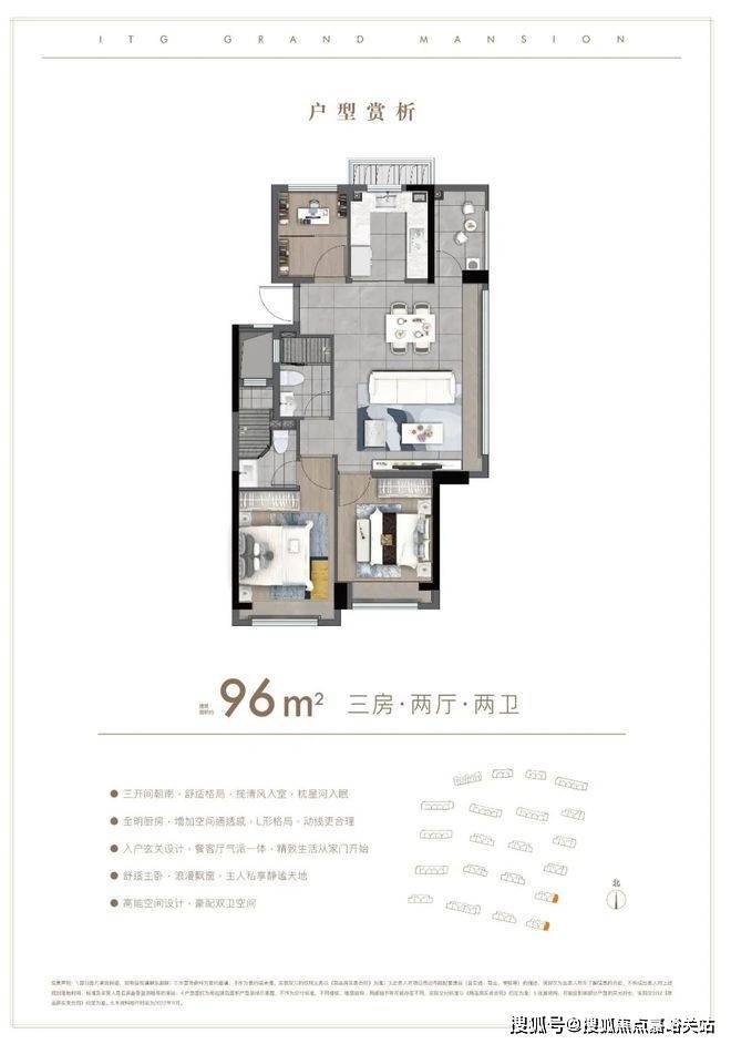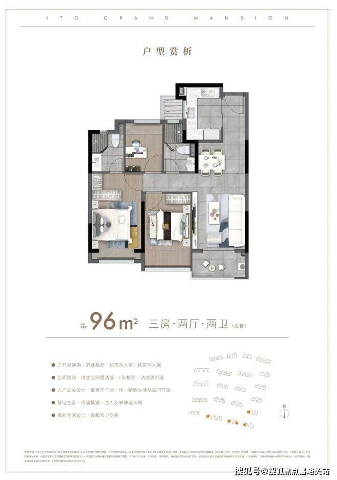 户型方面:约85-96㎡的全三房设计,每一款户型都是会传递出国贸的产品观。南北通透,布局考究,动静分离。